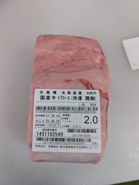冷凍 交雑牛リブロース 2分割(サーロ側) 2.1kg 北海道産 1624右 単価¥5700/kg 賞味期限2027/08/04